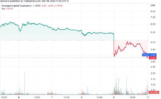 Silvergate 股价全天迅速下跌,大跌 42.1%,接近 2.84 美元。