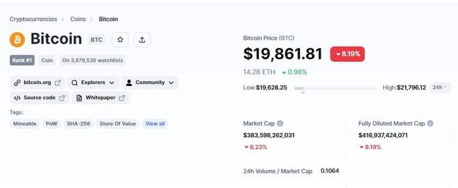 由于多个宏观经济因素汇聚在比特币上,比特币两个月来首次跌破 20,000 美元。