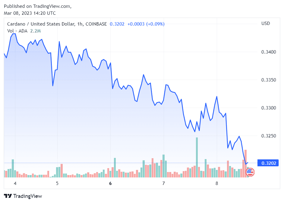 根据 CryptoSlate 的数据,截至发稿时, ADA 下跌 1.93% 至 0.31994 美元。该数字资产在过去 30 天内下跌了约 20%。