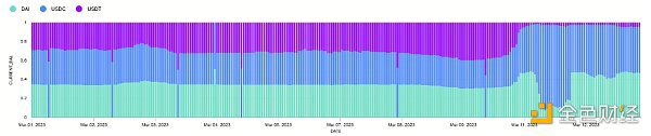 图7:Curve 3Pool的构成(来源:Flipside Crypto,东部时间2023年3月1日 – 13日上午11时)