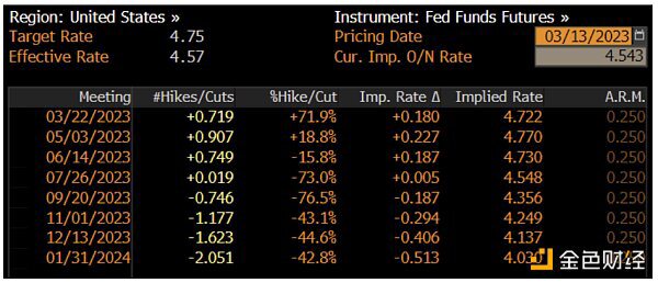 图8:联邦公开市场委员会利率预测(来源:Bloomberg,2023年3月13日)