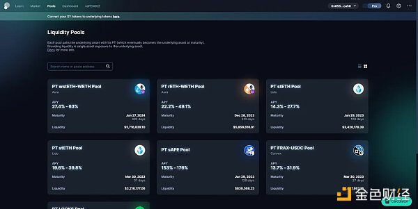 PT 是本金代币,所有 PT 可在到期时以 1: 1 的比例赎回标的物。这意味着流动性池中的所有 PT-stETH 最终都可以用来兑换 stETH。其他流动性池也是如此,如果有足够的时间,所有 PT 的价值等于标的资产。