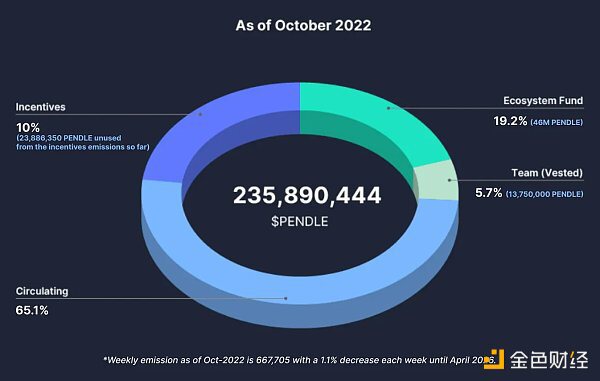 截至 2022 年 10 月,每周解锁量为 667705 ,每周减少 1.1% ,一直持续到 2026 年 4 月。目前的代币经济学允许通胀 2% 用于激励措施。