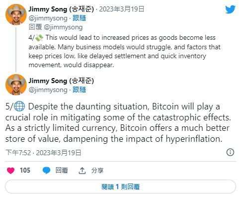 但Jimmy Song 等其他声音似乎支持Balaji 的赌注,声称比特币可以在如今金融体系的危机中发挥一些作用。