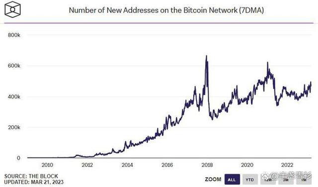 在其他地方,新地址首次与比特币网络交互的速度也呈上升趋势。