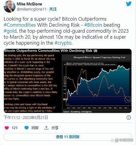 根据彭博社高级宏观策略师 Mike McGlone 的说法,比特币近期的强劲价格表现优于黄金可能预示着新的“超级周期”即将到来。