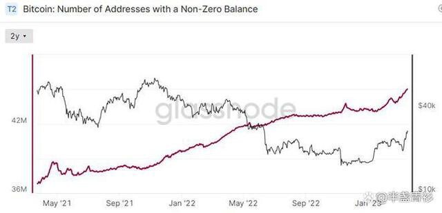 余额非零的地址也继续飙升。根据 Glassnode 提供的数据,该指标最近首次超过 4500 万。