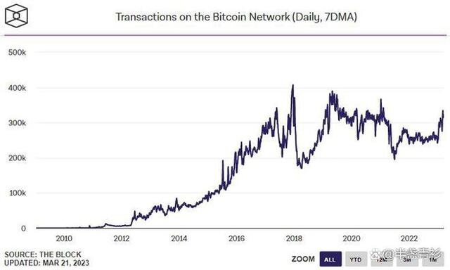 从 The Block 提供的下图中可以看出,比特币区块链上每天发生的交易数量最近达到了 2021 年初以来的最高水平。