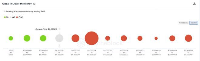 区块链取证公司 IntoTheBlock编制的全球资金进/出 (GIOMAP) 数据表明,SHIB 可能很快跌至 0.000008 美元。