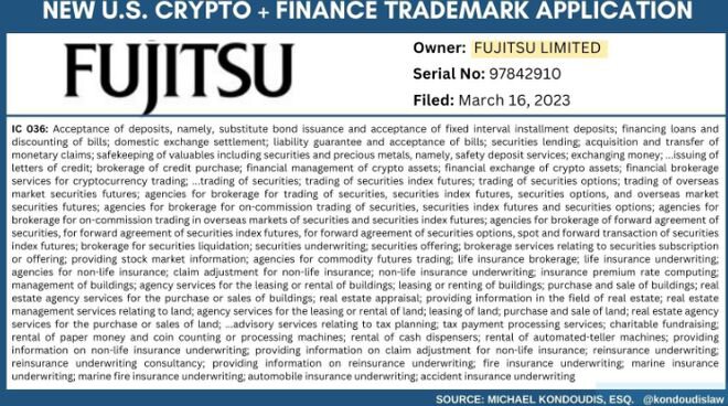 富士通正在进军银行、金融和加密领域吗?这家国际科技公司已经提交了兑换货币、证券交易、保险经纪、税务规划和加密货币交易的商标申请。