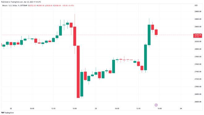 昨天比特币在多头摆脱了来自美国的另一个坏消息后,比特币反弹至 29,000 美元。