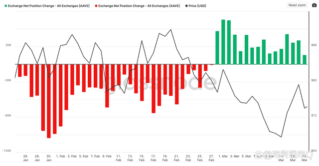 自 2 月收盘以来,公认交易所钱包上的 AAVE 代币净流量已连续超过 14 天为正。