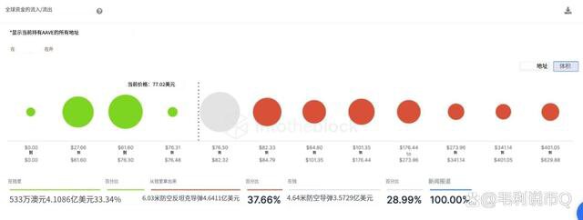 IntoTheBlock的全球货币进/出数据提供了对潜在 AAVE 看涨价格表现的洞察力。GIOM 指标根据每个地址中持有的代币数量跟踪代币持有者的价格分布。