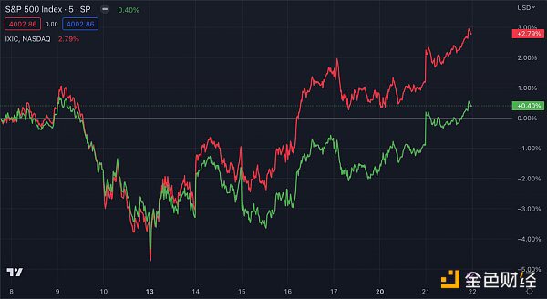 标准普尔和纳斯达克 3/9-3/21 - 来源:TradingView