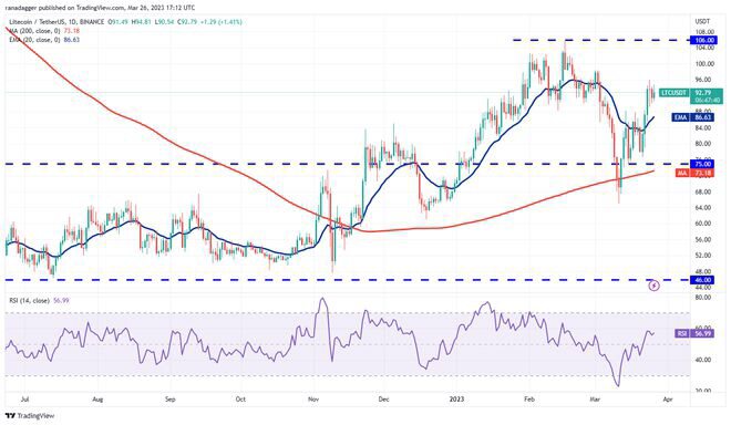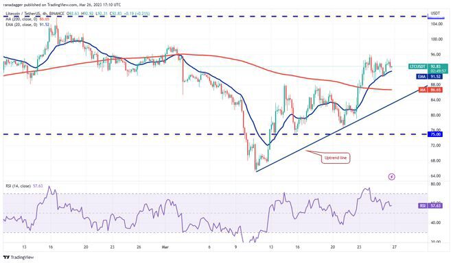 LTC/USDT 货币对可能首先升至 98 美元,然后重新测试 106 美元的强劲上方阻力。这是一个需要密切关注的重要水平,因为如果它崩溃,该货币对可能会加速至 115 美元,然后升至 130 美元。