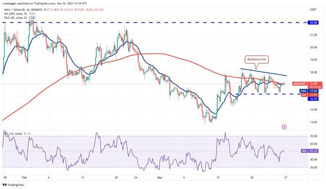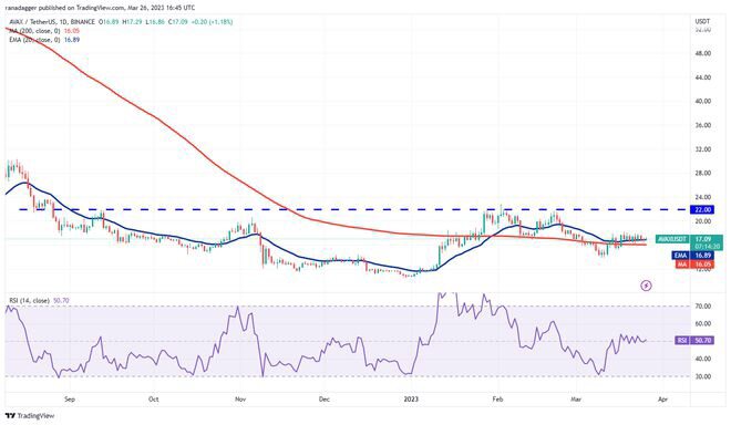过去几天,价格一直在 18.25 美元和 200 天均线(16.05 美元)之间盘整,但这种区间波动不太可能持续很长时间。如果买家将价格推高至 18.25 美元以上,AVAX/USDT 货币对将尝试反弹至 22 美元,在那里他们可能面临空头的强劲抛售。