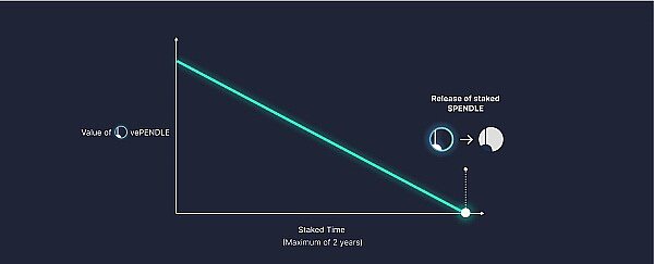 $PENDLE 是 Pendle 的平台代币,$PENDLE 还可以通过质押成为 $vePENDLE,进一步捕获协议价值。$vePENDLE 的数量与质押的 $PENDLE 数量和时间(最多两年)成正比。$vePENDLE 的价值将会在质押时间内线性递减,直至为0,随后,质押的 $PENDLE 将会被解锁释放。