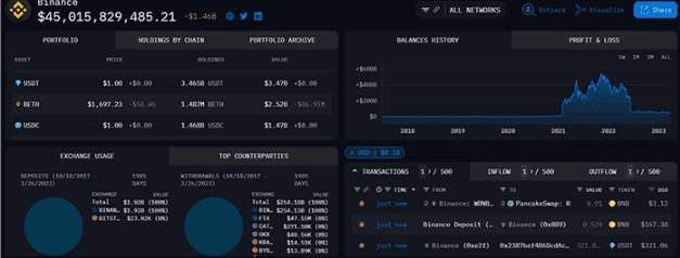 区块链分析公司 Nansen 显示,币安持有价值 634.9 亿美元的加密货币。
