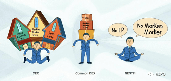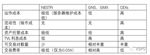 而从整体上看,NESTFi 的鞅网络与其他去中心化永续合约以及中心化交易所具备了如下差异: