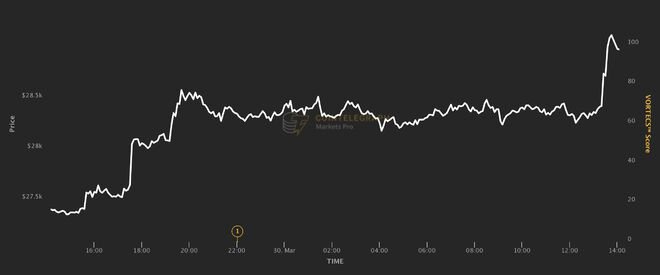 根据 Cointelegraph Markets Pro 的数据,比特币的价格在 3 月 30 日达到 29,132.82 美元,达到 11 月初加密货币交易所 FTX 崩溃之前的水平。