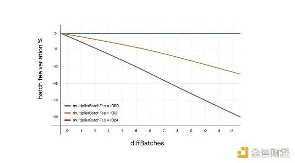 同理假如Batches提前了也会触发相应的batchFee调整机制:DiffBatches 表示提前验证状态的Batches的数量。