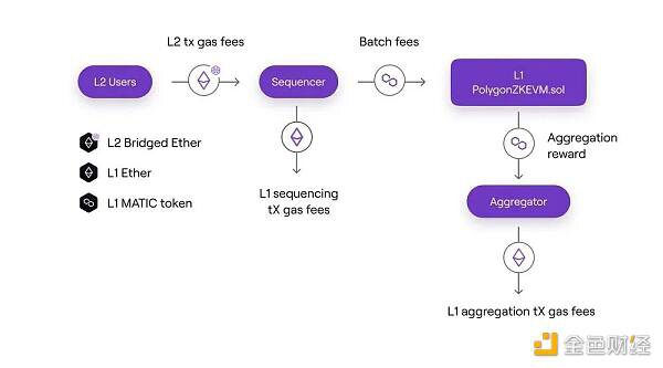 Aggregator 在调用trusted VerifyBatches 为L1合约内还没有被Finality的Batches提供Validity Proof的同时,也可以取出Sequencer提前支付在合约内的MATIC代币,作为提供Validity Proof的报酬。