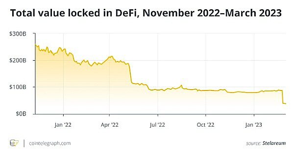 加密寒冬之中去中心化金融(DeFi)领域受到了熊市的严重影响。DeFi项目总价值已经从历史高点1500亿美元(早在2022年5月实现)滑落到目前的500多亿美元。