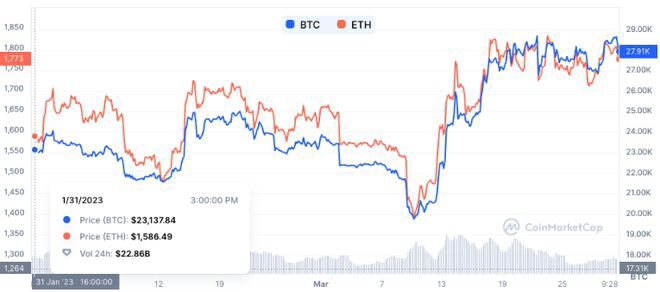 比特币(BTC)一季度表现远超以太坊(ETH),以太坊会补涨吗?