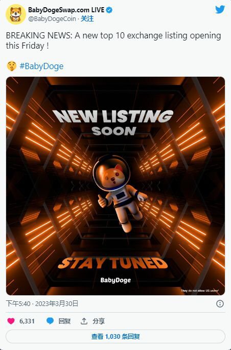 根据 Baby Doge 的最新推文,模因币很快将在前 10 大交易所上市。CoinMarketCap 数据显示,排名前 10 的交易所分别是 Binance、Coinbase、Kraken、Kucoin、Bitfinex、Bybit、Bitstamp、OKX、Gate.io,然后是 Binance.US。