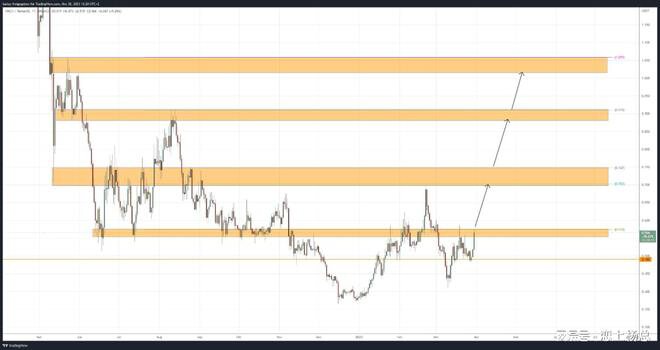 如果该区域也可以在中期跳过,则上行趋势将扩大至 0.90 美元。
