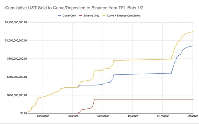 这些交易证明,超过 10 亿美元被 TFL 在 Curve 上出售或发送到 Binance。