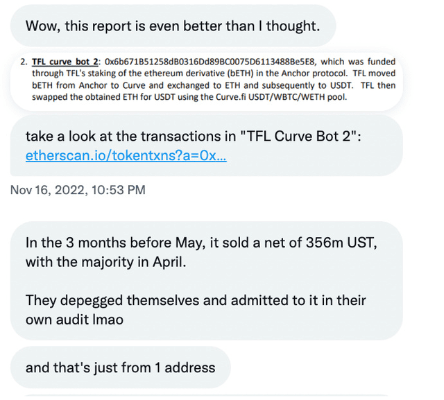 哦,那我们怎么确认是 TFL 倾倒了所有的 UST?