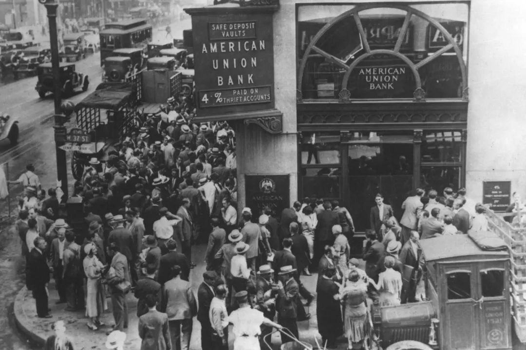 美国银行(Bank of United States)的破产导致人们对美国银行体系普遍缺乏信心,随后几个月又有数百家银行遭到挤兑。突然之间,经济衰退演变成了大萧条。