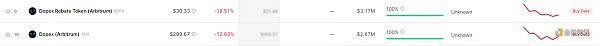 从 Arbitrum 公布的数据来看,Vela Exchange 仅可获得来自 Arbirum DAO 的 75, 000 枚 ARB 空投,与一众项目共同位列该榜单末尾。