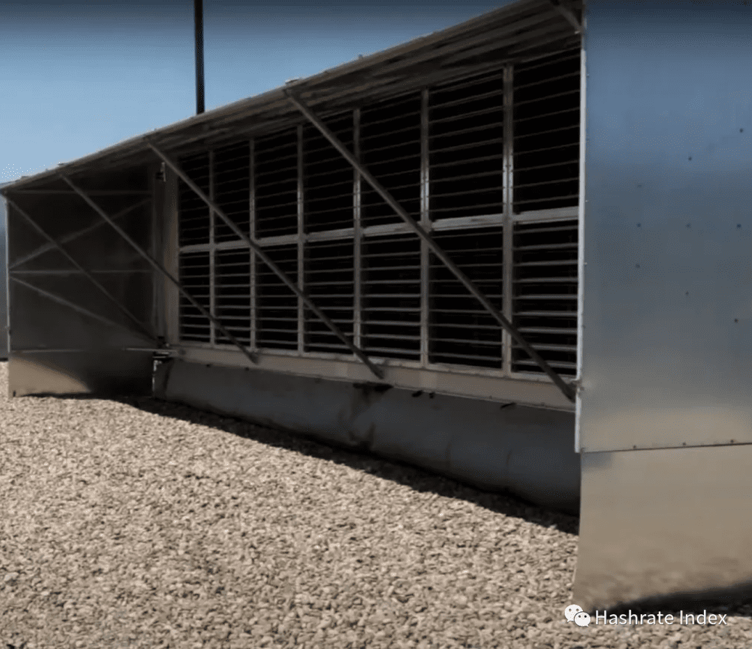 一种近期越来越流行的进气设计是使用安装在挖矿设施侧壁上的多排平行的遮阳板。过滤后的进气口位于遮阳篷的底部。与墙壁进气设计相比,这种基于遮阳篷的进气设计可以提供更多的进气表面积。此外,由于进气口朝下,这种设计在过滤灰尘和花粉方面表现要好得多。