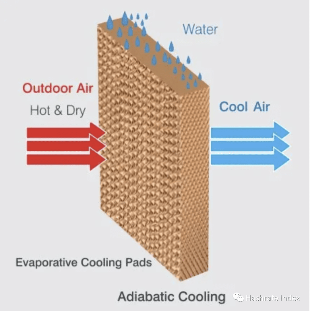 大多数矿机的设计是基于进气温度低于100°F的情况。然而,许多挖矿设施位于气候较好的地方,在夏季温度可能高达120°F。矿机若要在这种过热的环境中运作,那么前提必须做好冷却。蒸发式冷却可将吸入的空气温度降低15-30°F。