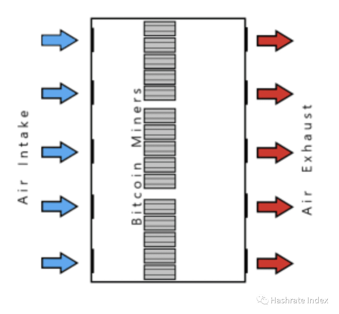 图一:比特币挖矿设施散热原理简图