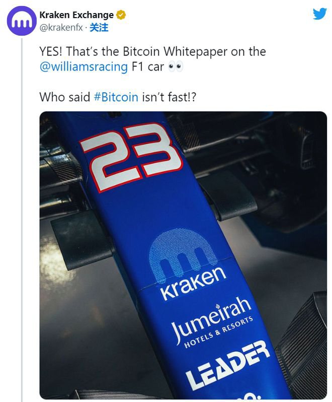 比特币白皮书在 Kraken 赞助的汽车上首次亮相 F1 赛车