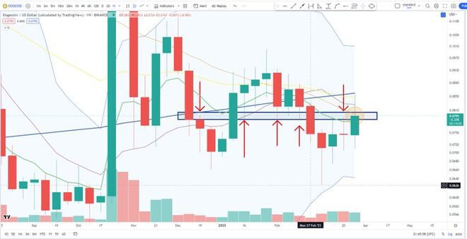 一位著名的加密货币交易员和分析师于 4 月 2 日在 Twitter 上分享了他对未来几天狗狗币 (DOGE) 价格的看法,以及他计划如何交易 meme 币。根据帖子,分析师确信 DOGE 的价格将很快达到 0.08 美元。