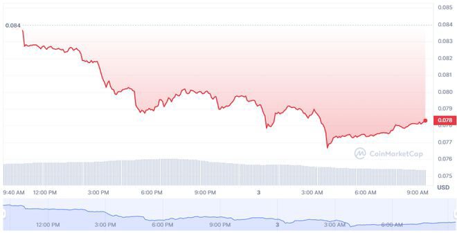 在价格下跌 6.46% 后,DOGE 目前的交易价格为 0.0783 美元。