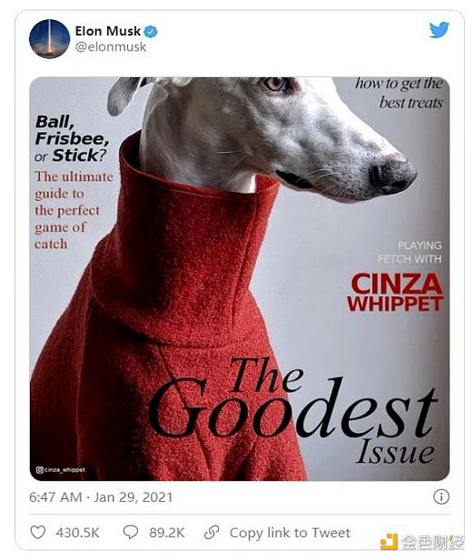 契机是狗狗币逐渐成为美国著名网上论坛Reddit的打赏货币,因为便宜,受到大量网民和名人的青睐,也算得上是第一个对标的实用场景。