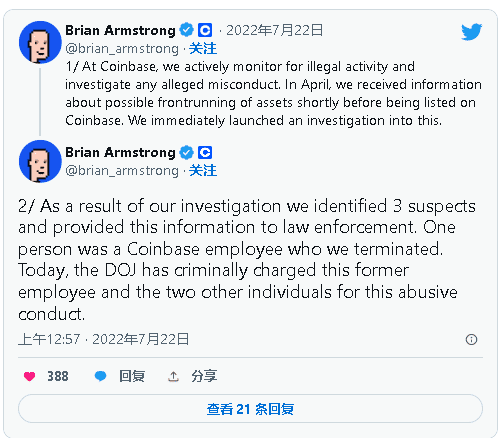 据称一名前 Coinbase 员工的兄弟从内幕交易计划中获利,现在有 20 年的时间偿还资金。