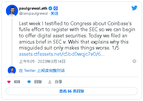 在 3 月 13 日的法庭之友简报中,Coinbase 表示它谴责被告的行为,但支持驳回此案的动议,因为它辩称美国证券交易委员会无权提起诉讼,因为有问题的代币不要通过 Howey 测试 ——一种评估资产是否为证券的美国法律原则。