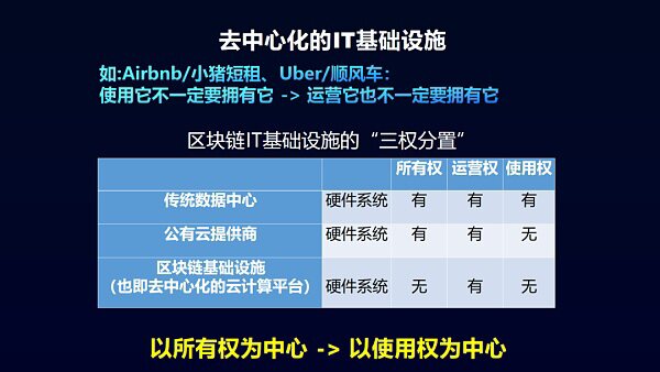 观察元宇宙五大地基,也不难发现,计算、存储等算力也是瓶颈。中心化的计算,如云计算完成低延时、高性能(如每秒事物交易数,或高带宽);以区块链为代表的去中心化计算则满足前端业务对确权、保真、可信等的要求。除此之外,还可利用云边端的设备的闲置资源;国内就有初创公司在做边、端设备资源池化并对外出租计算资源的尝试,如musys。结合区块链的激励措施,有望探索出和传统云计算不一样的交付方式:区块链IT基础设施的“三权分置”,也即IT设施的构建,从“使用它不一定要拥有它”(公有云) ,转变为“运营它也不一定要拥有它”,如同Airbnb、滴滴顺风车这类共享模式,核心在于极大的降低了运营方组织、管理和调度供给端资源的成本门槛,如图2。