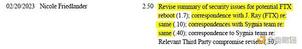 这里补充一个小插曲,之所以能在财务细节中看到这些讨论,是因为 FTX 与律师团队的这些讨论需要按时长付咨询费,而 Sullivan Cromwel 二月份从 FTX 处获得的费用收入高达 1350 万美元。