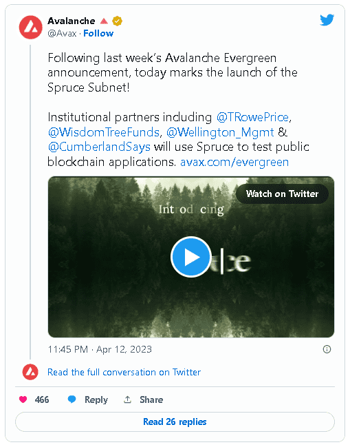4 月 6 日,Avalanche宣布推出 “Evergreen”子网协议,该协议允许机构创建具有合规特性的定制区块链。当时,Ava Labs 的一位代表表示需要这些子网,因为以前的解决方案,如 Corda 和 Hyperledger,互操作性不足以满足大型机构的需求。