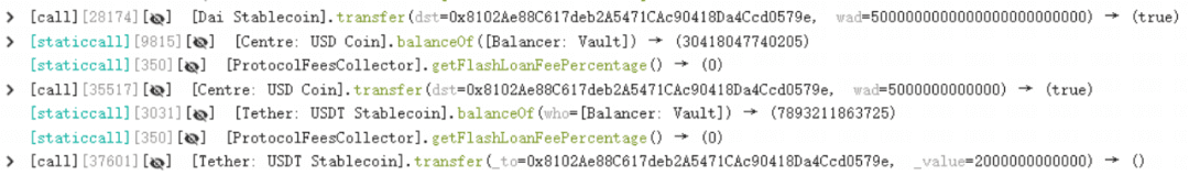 1.攻击者首先通过闪电贷借出了500万Maker: Dai Stablecoin、500万USD以及200万Tether: USDT Stablecoin作为攻击本金。