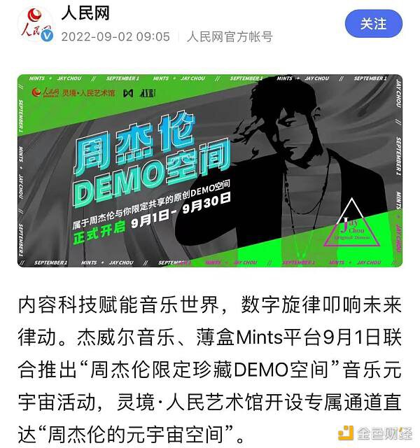 2022年底,周杰伦还通过运营自己的IP推出了数字藏品,名为Demo空间。其玩法类似盲盒,用户可以通过购买不同价格的钥匙打开这个空间,并以数字人的身份边听音乐边挖彩蛋。上线一天后,Demon空间售出了近6万个,以最低价格20元计算,销售额也达到了120万元左右。