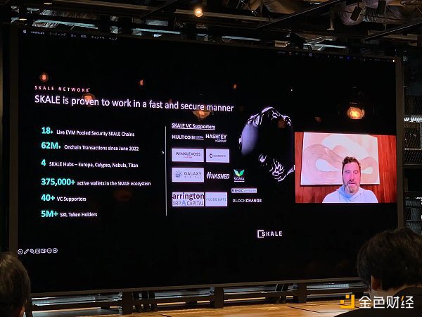 Skale Network CEO Jack O'Holleran 通过线上视频对项目进行了介绍,该项目是一个具有模块化区块链的可扩展性和安全性的项目,也出现在 Messari 的年度趋势报告中,项目已经获得了 Multicoin、Hashkey、Consensys、Winklevoss 等机构的资金支持。