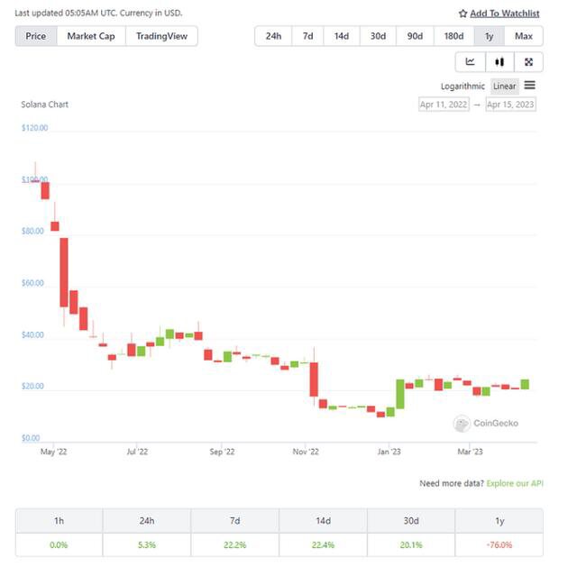 虽然 Solana 已获得投资者和开发人员的极大关注,但在现实世界中缺乏实际采用,这可能是其价值在 1 年图表中下跌高达 76% 的原因之一。尽管 Solana 专注于可扩展性和快速交易速度,但它尚未在加密社区之外获得广泛采用。此外,网络不稳定,导致错误和延迟,可能导致价值下降。